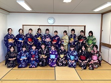 家庭学科(生活創造科・服飾デザイン科)の選択科目「ファッション造形」の受講生徒20名は、12月に行われた家庭科技術検定和服1級(ゆかた製作)で、全員合格を果たすことができました。今年度最後の授業では、製作した浴衣を着て記念撮影を行いました。頑張って製作した浴衣を、今後、夏祭りなどで着こなしていって欲しいです。