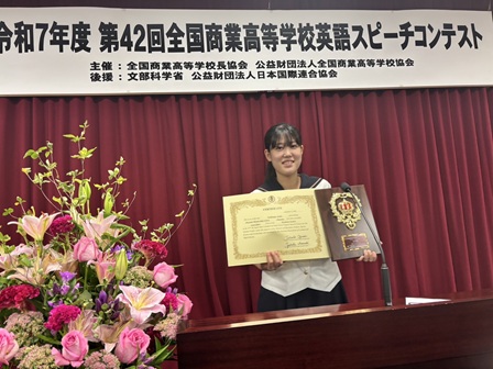 国際経済科3年の吉永彩夏さんが「全国商業高等学校英語スピーチコンテスト」で上位入賞しました!