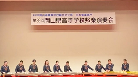 11月1日(土)、岡山市立西大寺公民館大ホールで開催された「第39回岡山県高等学校邦楽演奏会で最優秀賞をいただき、来年、秋田で開催される「全国高等学校総合文化祭」への出場が決定しました!