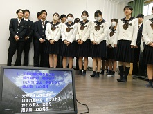 その後、校歌を合唱しました。感染症対策のため、リモート開催となりましたが、表彰や壮行式のため、配信会場に入った生徒たちの大きな歌声がHR棟に響き渡りました。