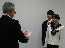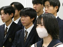 校長先生と誠友会(南高生徒会)会長からの激励に、造田さんが代表選手としても意気込みを語り謝辞としました。