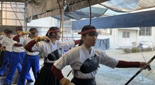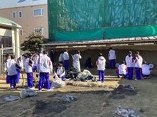 弓道部員たちが、年の瀬に練習場を大掃除。2年に一度の安土(的を立てる砂)直しも行いました!