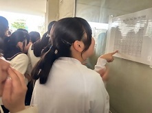 張り出されたクラスメートの顔ぶれを確認すると、あちらこちらから、歓声が沸き上がり、喜びのあまり抱き合う生徒たちの姿も。