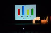 誠友会(生徒会)役員から成績を発表されるたび、各クラスから歓喜の声が上がり、場内は大きく盛り上がります。次に、各ブロックの得点集計結果が「中間成績」の棒グラフで表示されると、全校生徒から更に大きな歓声が。リードしているブロックはこのままで、そうでないブロックはここからの巻き返しをかけて体育祭へ臨みます。