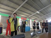 開場前の決起集会です。マイクをいただき皆さんを代表して「エイエイオー!」