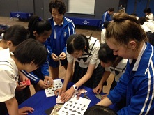 現地の高校を訪問して、高校生と交流しました。折り紙の説明をしながら一緒に折ったり、ダンスをしたりするうちに、すっかり打ち解けて仲良くなりました。また、毎日通った学校での修了式では、英語でのプレゼンテーションも行いました。