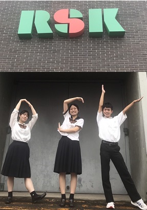 何度もカミカミしながら、笑ったり叫んだりで楽しい収録に。帰り際、ものすごく分かりにくいのですが、「RSK」のポーズで「ハイ!チーズ」。よほど楽しかったようです。