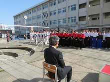 毎年恒例の中庭送別会。校内で活動していた部活動の生徒たちも集結です!