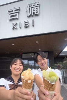 まずは、年末くらいまでの販売を予定している岡山シャインマスカットを使った季節限定ソフトクリーム。次に、定番化を見込む、きび団子と黒蜜をかけたソフトクリームの2品です。