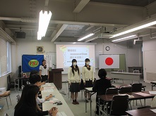 家庭クラブ本部役員は、スクールプロジェクトとして昨年から取り組んでいる、補食で学校全体を元気にする取り組みをバージョンアップさせ、南高オリジナルカステラの完成までの研究の成果を発表しました。