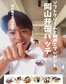 また、Instagramにアップしている動画を提示し、ご注文くださったお客様には、生徒が手作りした「岡山弁缶バッチ」をもれなくプレゼント!
