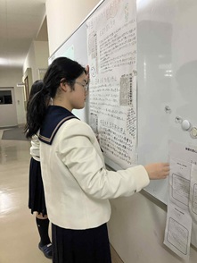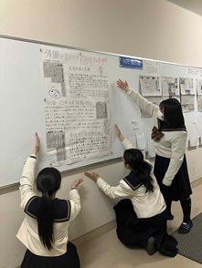 11月の新聞記事の中から切り抜いたニュースについて3人でまわし読み新聞に仕上げ、先月のものと張り替えました。世の中の出来事を自分事として考えることができれば、社会情勢に敏感になります。それによってものの見方が分かり、思考力も高まるというもの。