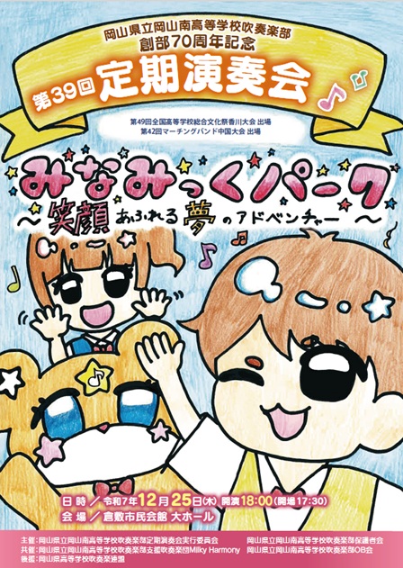 また、今年新たに発足した「岡山南高校吹奏楽部支援吹奏楽団ミルキーハーモニー」との合同演奏もあります。
