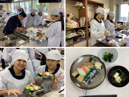 生活創造科3年生が、本校の卒業生である難波先生をお迎えして実技講習会を行いました。岡山市内で「喜怒哀楽」という飲食店を経営されている先生から、調理の技法だけでなく、夢を諦めないことの大切さについても教えていただきました。今回の講義ではきゅうりを使った数多くの飾り切りや握り寿司の作り方を丁寧に教えていただきました。握り寿司はシャリや具材の模型を使って練習させていただきました。初めて学ぶことばかりで大変勉強になる実習でした。