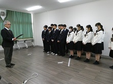 校長先生と誠友会(南高生徒会)会長からの激励に、造田さんが代表選手としても意気込みを語り謝辞としました。