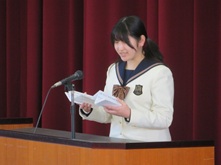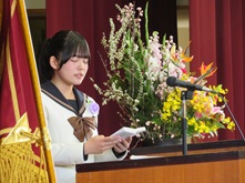 続いて在校生による送辞です。憧れだった先輩たちの活躍を回想しつつ、これからの南高を背負う決意が表明されました。
