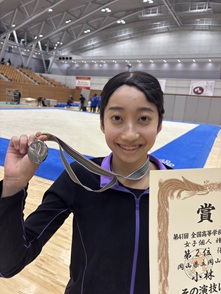 個人競技種目別クラブでなんと小林桃菜さん(国際経済科2年)が準優勝という快挙!団体戦もノーミスの演技で第5位と大健闘でした!個人準優勝の小林さんは、個人4種目と団体を兼務するというハードスケジュールでしたが、安定のパフォーマンスで初メダルを仕留めました。