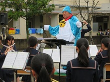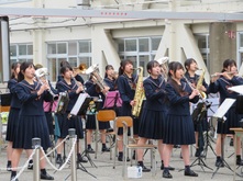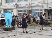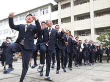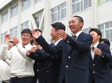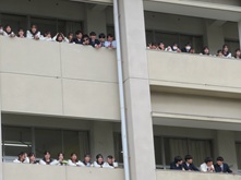 南高、春の中庭は、新入生歓迎セレモニーが目白押し。まずは吹奏楽部による中庭コンサートが開催されました。途中から野球部たちも乱入しての大騒ぎ。廊下から見下ろす上級生ギャラリーたちも、新入生歓迎と言いながら一緒に盛り上がっていました。