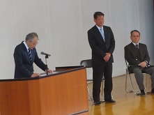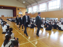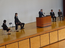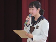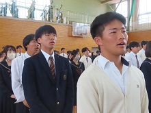 この春、南高をご転出された先生方との最後のお別れです。生徒を代表して誠友会(南高生徒会)会長が感謝の言葉を述べ、先生からも最後のメッセージをいただきました。