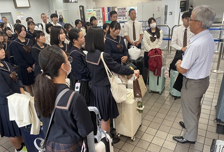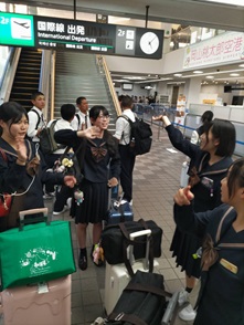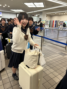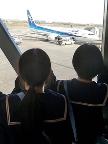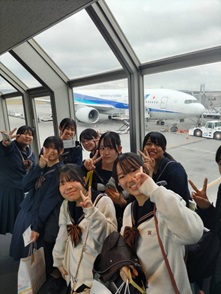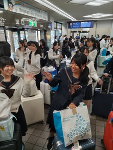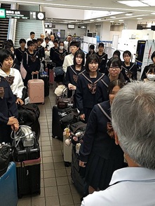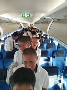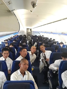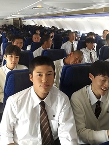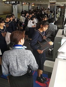 初めて飛行機に乗るという人もちらほらいるようですね。お見送りの校長先生とフライト前に何をお話しているのでしょう。