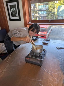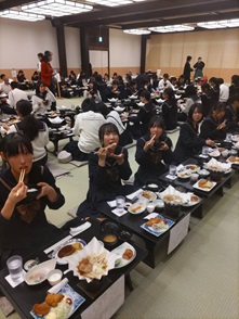 みんな元気で大盛ご飯もぺろり。今日は3コースに分かれた探究活動に取り組みます!