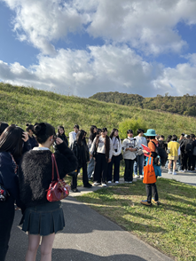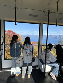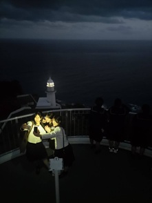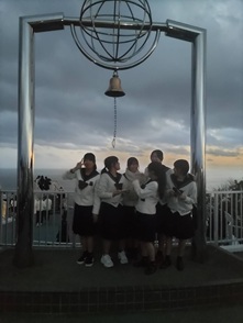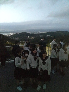 地獄谷のあとは地球岬です。緯度が高い北海道ですから、4時くらいでほぼ真っ暗に。ちょっと写真が暗くて分かりにくいのですが、恋が成就する?と噂の鐘を奪い合うように鳴らしたり、暗がりで映える写真を撮ったりと、生徒たちは元気いっぱい楽しんでいるようです!