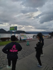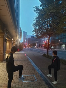 陸上部さんが、薄暗く肌寒い北海道の早朝、自主トレに励んでいました。
