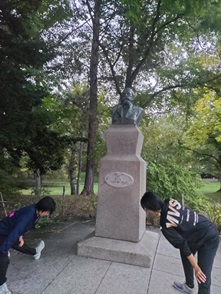 今朝の陸上部早朝練習は北海道大学のクラーク博士像前にて。